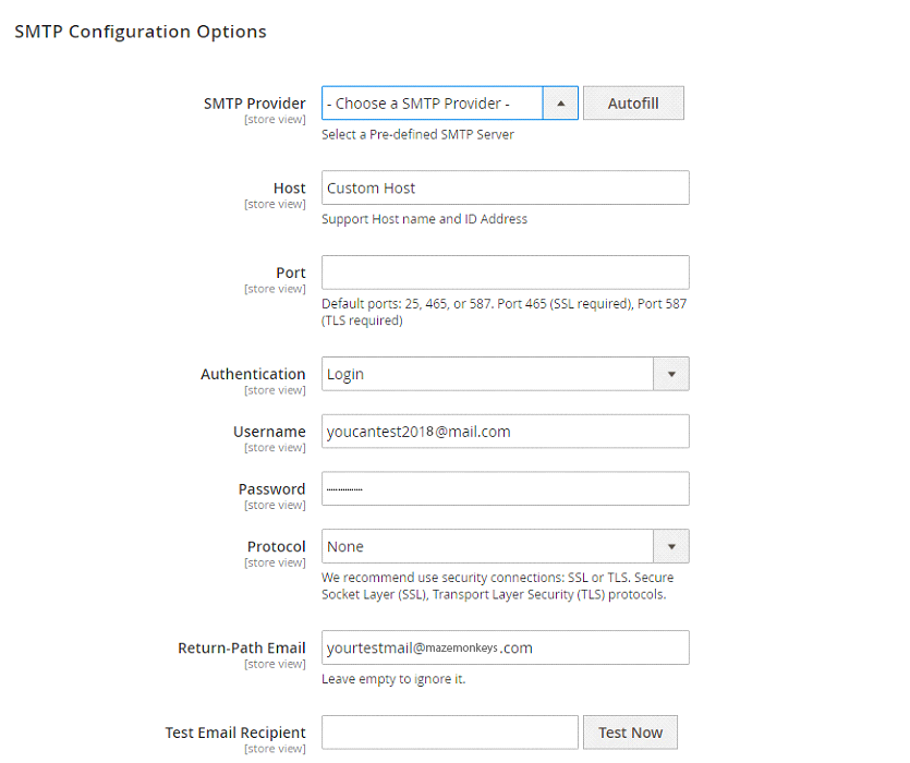 STMP is the easiest methods that any neophyte can configure himself effortlessly. All you need is collecting those below pieces of data to enter in the SMTP extension for Magento 2, to have the integration operation.