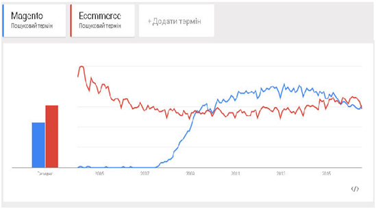 From the above statistics, you can say that the word “Magento” is searched on Google is more often than the word “Ecommerce” since 2008 which does not surprise us at all.