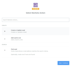 Then, you need to choose one of the options from the drop-down menu. In that Select Marketo Action field and click on continue.