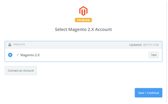 After that, you have to connect an Account in select Magento 2.x account field. In this step enter full domain, admin username and admin password of your Magento 2 store as shown below: