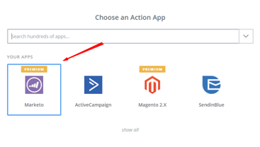 In Choose an Action App field, choose Marketo and then click on Continue.