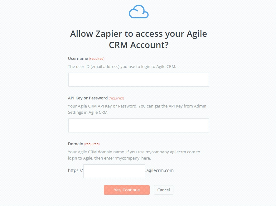 - Now, your screen will display as an image below. After that, enter username, API Key or Password and Domain that is required on that page, then click on Yes, Continue.