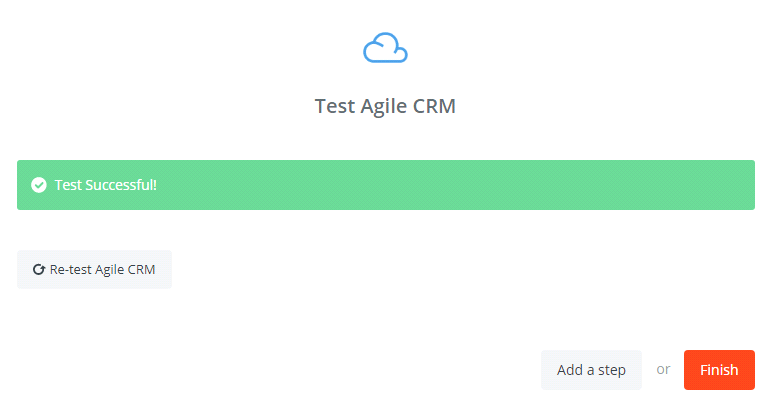 - Wonderful, you have tested Agile CRM successfully. Lastly, choose Finish and set the name your zap to complete.