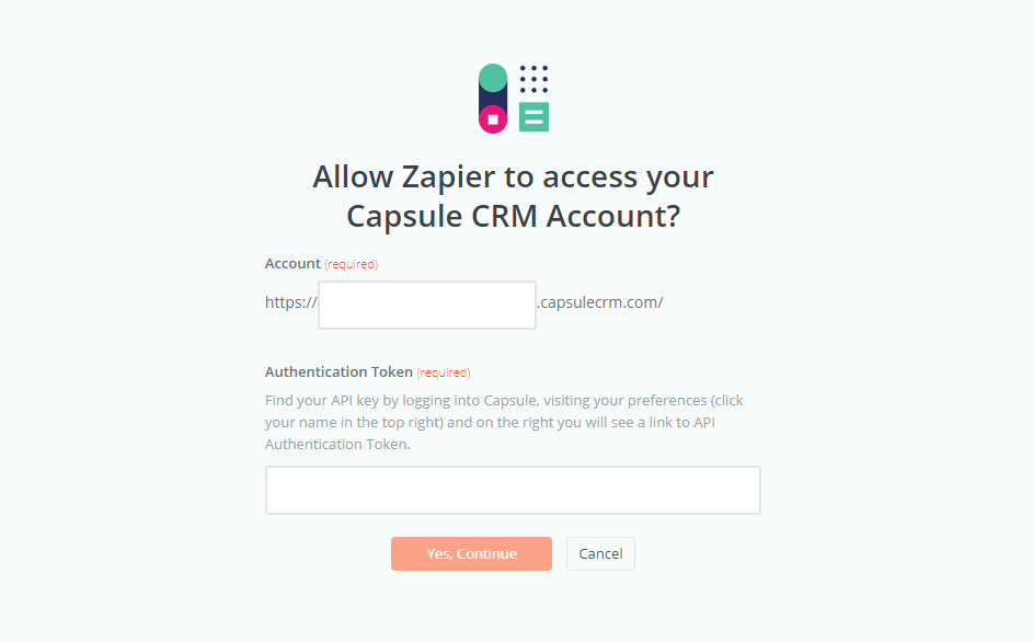 - Now, your screen will display as the following image. Further, enter Authentication Token that is found on your preferences page, then click on Yes, Continue.