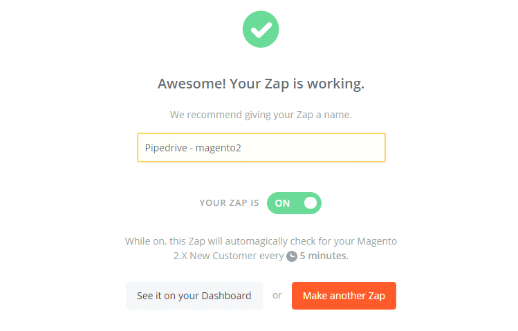 - Your Zap is working and it will auto-check for your Magento 2.x new customer.
