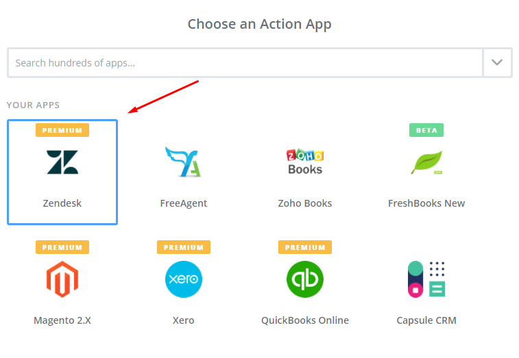 In Choose an Action App field, choose Zendesk and click on Continue.