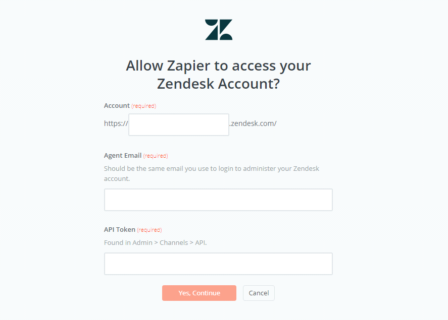 On this step you have to sign in your account and enter API Token that is found in your Zendesk account. Immediately, your PC will show the account that you have just created. Now, click on Save + Continue.