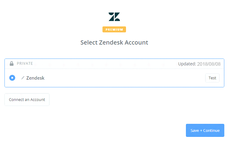 Next, you have to Select Zendesk account. Please click on Connect an Account. Then, your screen will display the image as shown below: