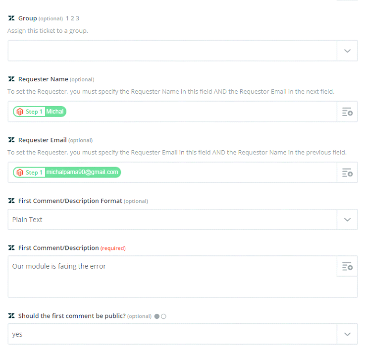Great! You have just done the integration Zendesk with Magento 2 via Zapier.