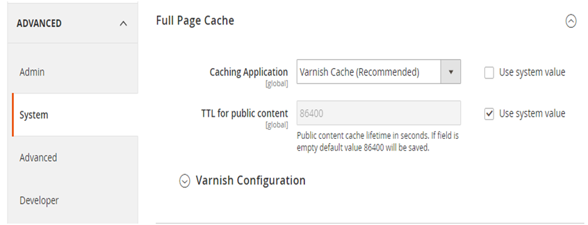 Go to backend, Stores > Configuration > Advanced > System > Full Page Cache,